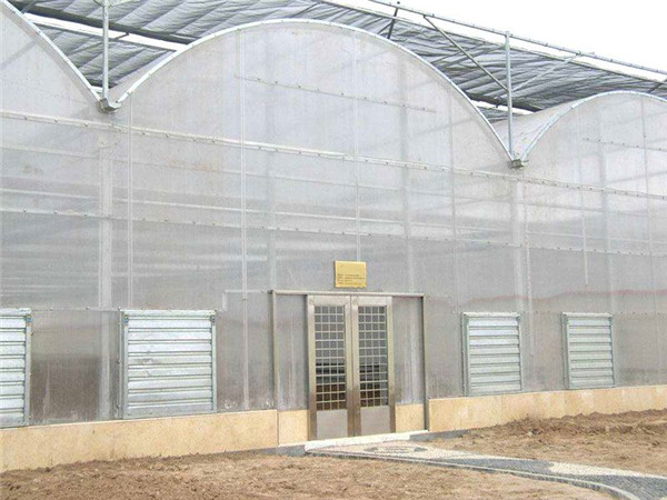 采用熱鍍鋅鋼制骨架,覆蓋材料為5mm鋼化玻璃,透光率在九十以上。溫室大棚頂部及四周為專用鋁型材。溫室大棚頂部為雙向開窗,齒輪齒條副傳動。根據用戶需要,溫室大棚兩個端面可安裝濕簾和風機,也可在兩個端面及側面安裝鋁型材推拉窗、平開窗或外翻窗。
